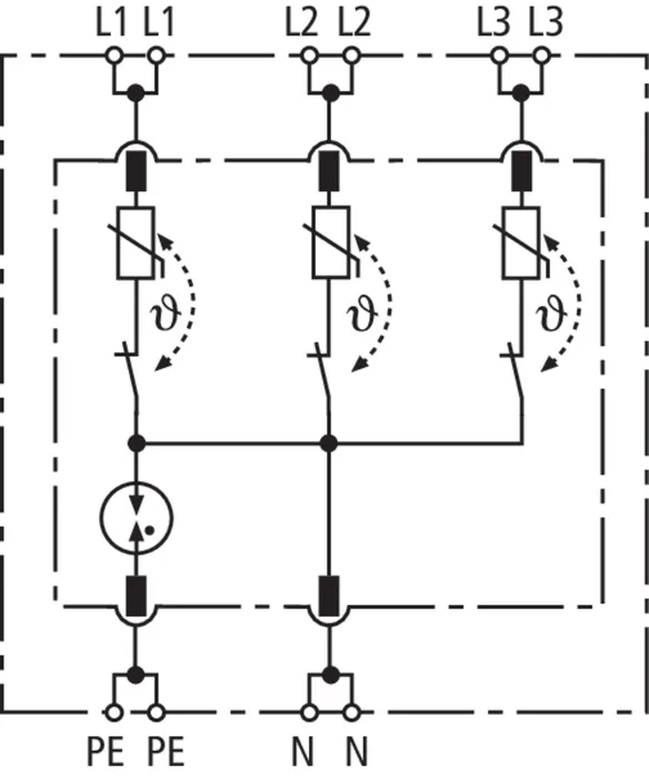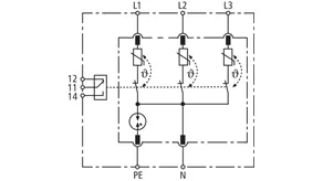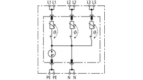 | Gesamtableitstoßstrom (8/20 µs) [L1+L2+L3+N-PE] (Itotal ) | 8 kA |