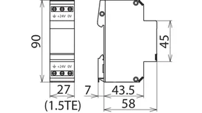 Energetisch koordinierter Kombi-Ableiter zum Schutz des Gleichrichters im Schutzstromkreis (Farbe rot). Steckbarer Fernmeldekontakt (Öffner) für Überlast-Anzeige (Thermoüberwachung der Varistoren). Einbau im Stahlblechgehäuse empfohlen. Durch kapazitive Steuerung wird eine niedrige Impuls-Ansprechspannung erreicht.