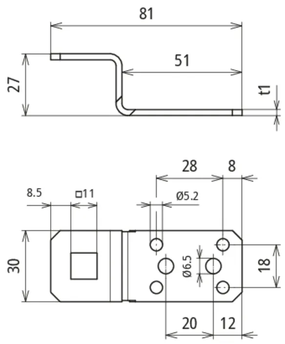 Abmessung 11 x 11 mm (z. B. für KS-Verbinder M10), Anschluss längs oder quer.