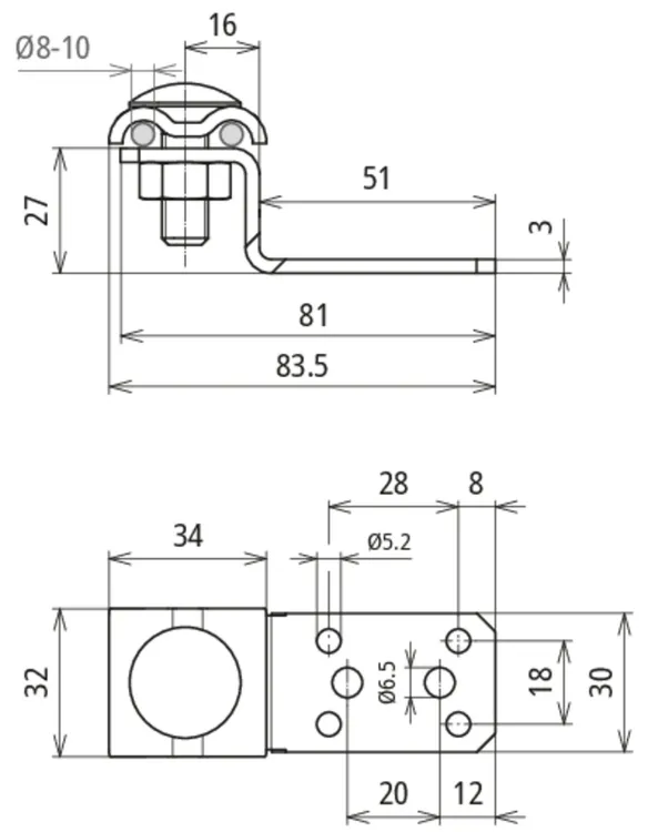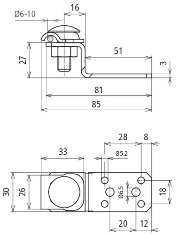 Befestigung: [4x] Ø5,2 / [2x] Ø6,5 mm