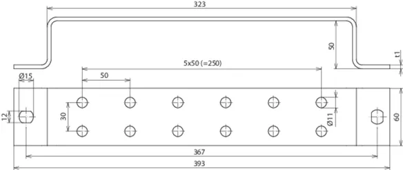 | Abmessung (l x b x t1) | 393 x 60 x 5 mm |