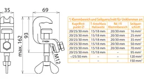 | Für Seilquerschnitt Cu | 16 ... 150 mm2 |