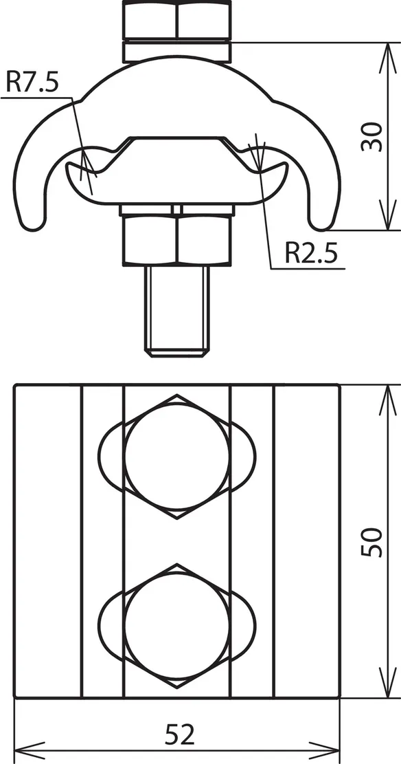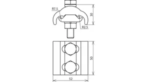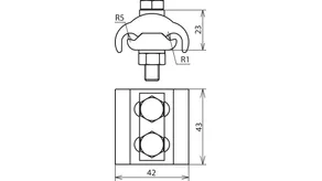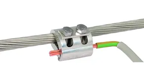 Parallel connector for establishing an equipotential bonding system in potentially explosive atmospheres. Tested for non-sparking use in potentially explosive atmospheres in Ex zone 1 and 2 (gases of explosion group IIC) and Ex zone 21 and 22 (dust). Small version for different cable diameters, with spring washer and two screws which are secured against working loose according to Supplement 2 of DIN EN 62305-3.
