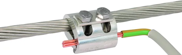 Parallel connector with spring washer for connecting round conductors/cables in Ex zones 1/21, 2/22. The clamps are secured against self-loosening in accordance with DIN EN 62305-3 Supplement 2.