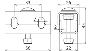| Fixing holes for wire cable tray | [4x] 9 x 20 / [1x] 9 x 9 mm |