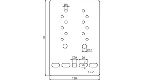 | Fixing holes for wire cable tray | wire cable tray [4x] 9 x 20 / [1x] 9 x 9 mm |