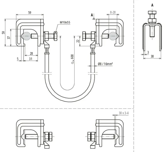 | Clamping range Fl connecting clamp | 30 x 3-4 mm |