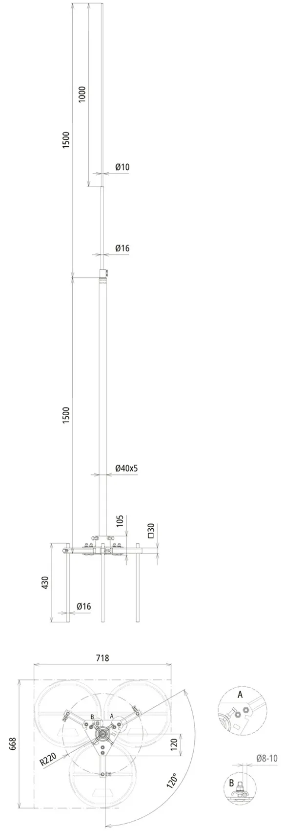 | Space required for tripod with 3 bases, 17 kg each (l x w) | 850 x 930 mm |