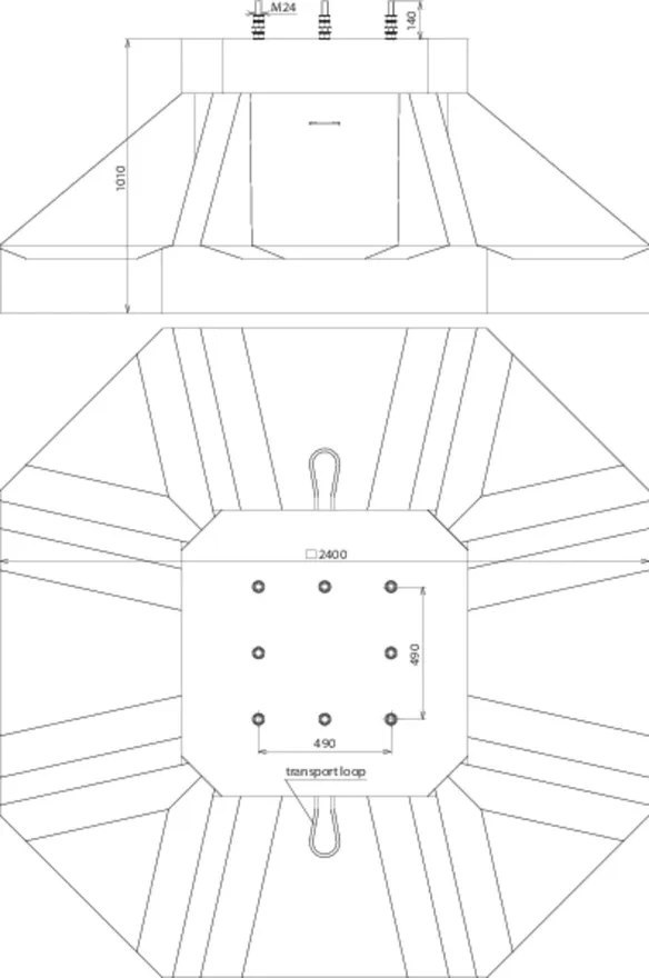 Flange plate 565 x 565 mm.