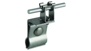 Seam clamp with enlarged contact surface for fixing additional air-termination systems or air-termination rods on metal roofs (e.g. Part No. 123 021).