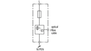• Spark-gap-based lightning current arrester with an integrated backup fuse capable of carrying lightning currents in a compact enclosure