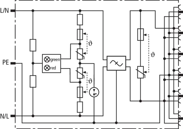 | Total discharge current (8/20 µs) [L+N-PE] (Itotal ) | 5 kA |