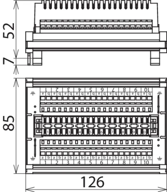 DIN rail mounted routing module with LSA disconnection block of the 2/10 series as well as spring-loaded terminals for variable wire connection. DPL and DEHNrapid LSA surge arresters can be plugged into the routing module.