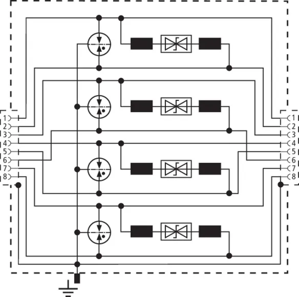 | D1 Lightning impulse current (10/350 µs) per line (Iimp ) | 0.8 kA |