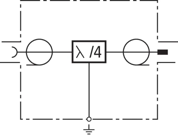 Combined lightning current and surge arrester with maintenance-free quarter-wave technology for multi-frequency applications (multi-carrier systems). The arrester is also capable of discharging high partial lightning currents. No remote supply as the arrester represents an electrical short-circuit for low-frequency signals. Broadband device for all 4+3G services.
