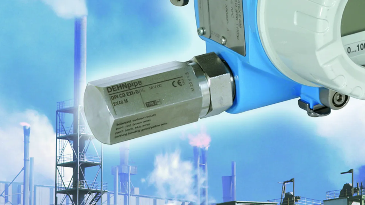Flameproof surge arrester for the data and power side for protecting one 120 / 230 V power supply system and one 24 V data interface of field devices in potentially explosive areas (zones 1 and 2).