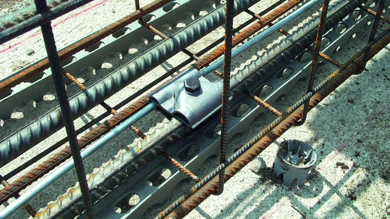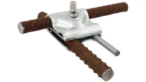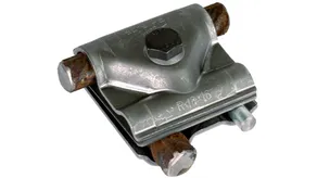 MAXI multipurpose connecting clamp (MAXI-MehrzweckVerbindungs-Klemme) for universal use as a cross clamp, T clamp and parallel clamp, for connecting earth rods or reinforcing bars; three-piece, with thread in the base part.
