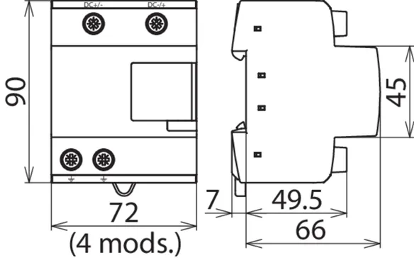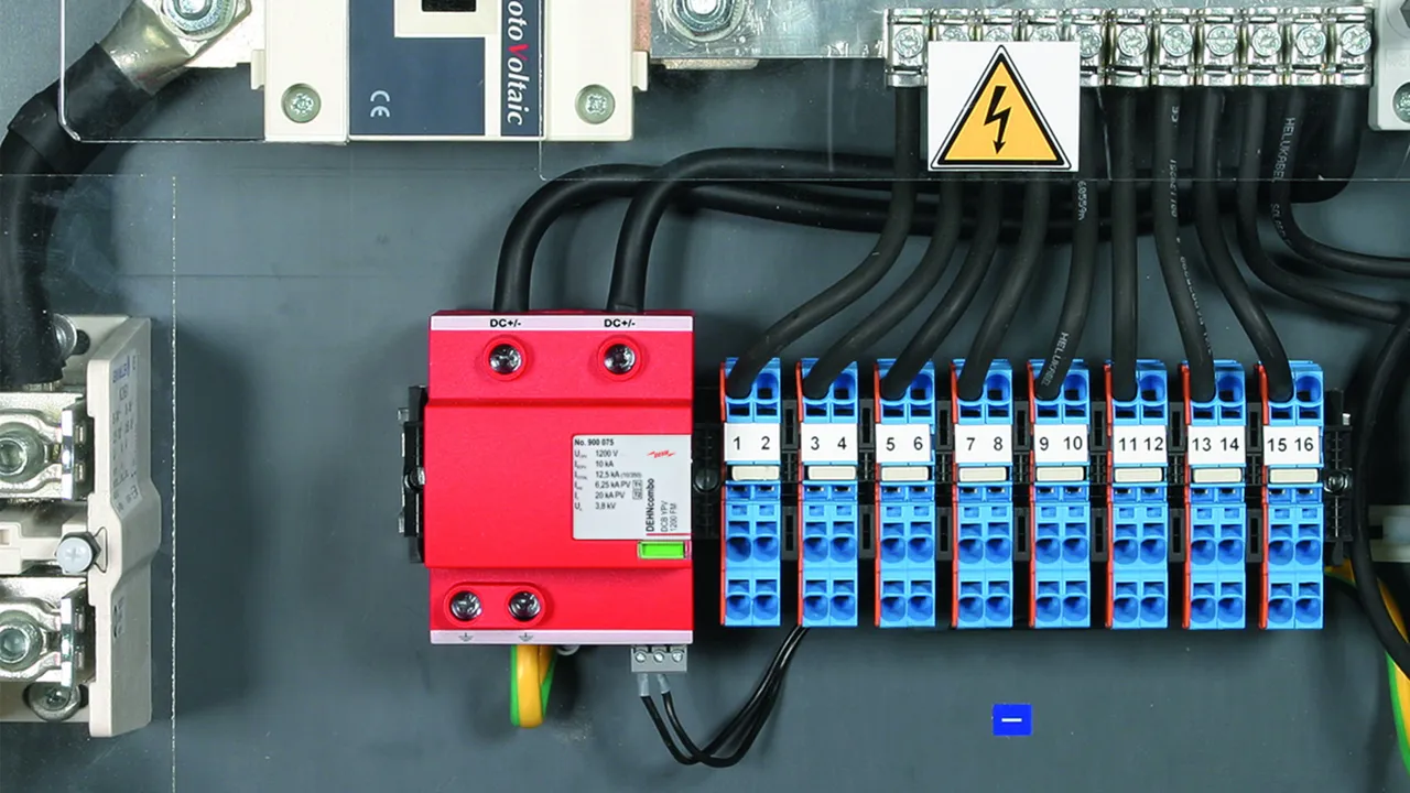 • Prewired type 1 + type 2 combined lightning current and surge arrester for use in photovoltaic generator circuits