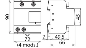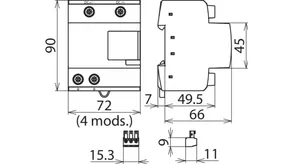 with three-step d.c. switching device, width: 4 modules