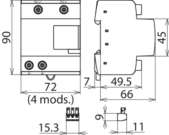 • Space-saving enclosure with a width of only four modules for up to 1500 V d.c.