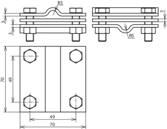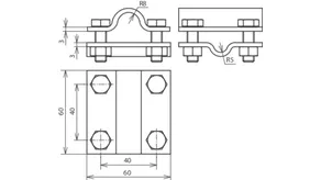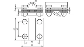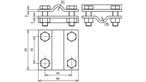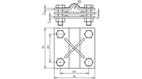 Cross units without intermediate plate for two round and flat conductors HDG steel