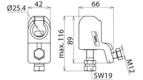 | *) See table for „Clamping range and maximum cable cross-section of universal clamps used for" | |