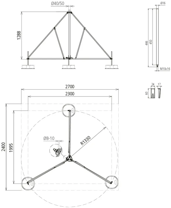 | Number of concrete bases | 3-12 blocks, 17 kg each |