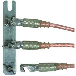 Anti-rotation hook-type cable lug mounted on a three-pole earthing busbar.