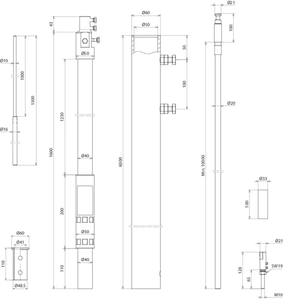 The complete kit of the air-termination mast for extreme heights (for biogas plants, for example).