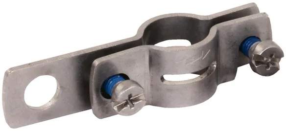 Fixing kit for attaching the HVI light plus Conductor to the HVI light plus supporting tubes, Ø40 mm, consisting of connection plate and fixing ring with stainless steel clamp for the sealing end (including four plastic holder halves and two cable ties).