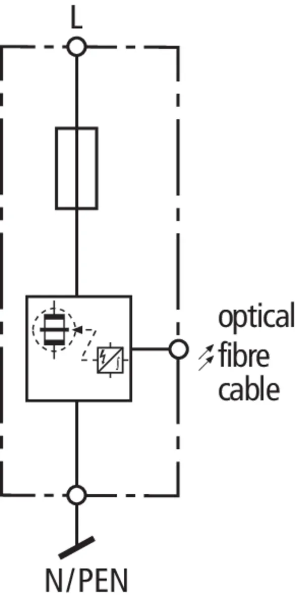 - Szikraköz alapú villámáram-levezető beépített-, villámáramot is levezető, előtét biztosítóval kompakt tokozatban
