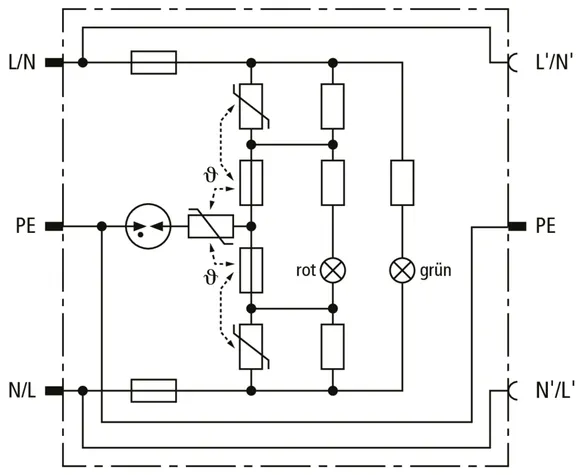 | Teljes levezetési áram (8/20 µs) [L+N-PE] (Itotal ) | 5 kA |