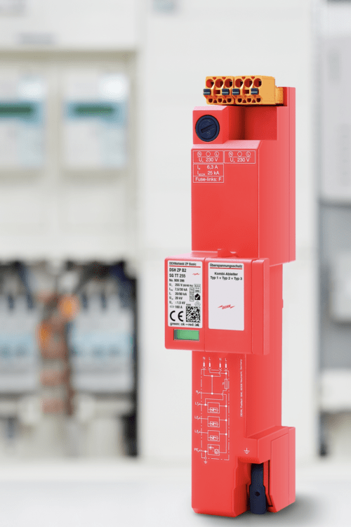Der Kombi-Ableiter Typ 1+2+3 mit zweifachem Spannungsabgriff erfüllt die Vorgaben der VDE-AR-N 4100 und bietet sicheren Schutz im Vorzählerbereich durch RAC-Funkenstreckentechnologie.