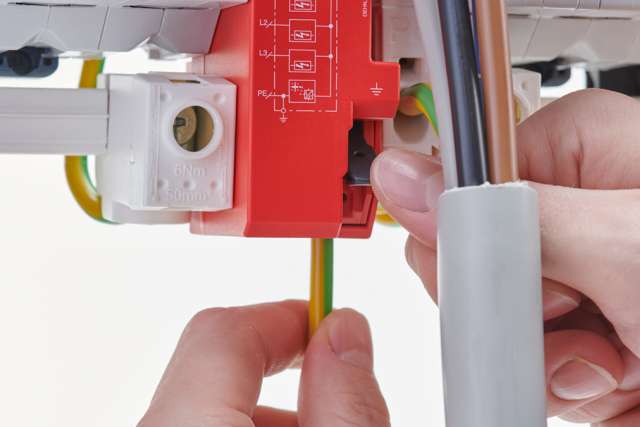 DEHNshield ZP SG lässt sich einfach und schnell montieren. Sie sparen Zeit durch die werkzeuglose Montage des Ableiters und den Wegfall einer zusätzlichen Montage des Spannungsabgriffs. Außerdem gewinnen Sie dank der schlanken Bauform Platz im Zählerschrank: ein Zählerfeld reicht aus, selbst bei zwei Sicherungshauptschaltern mit Einspeiseadapter.