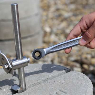Eine 13er Schlüsselweite passt für alle Verschraubungen. Weiteres Werkzeug muss nicht gewechselt und auch nicht erst auf das Dach getragen werden. Dies spart Zeit, Gewicht und Mühen beim Transport.