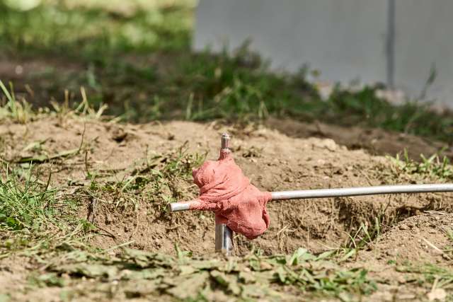 - vor Einbringen überprüfen, ob Versorgungsleitungen und/oder Kampfmittel im Untergrund sind